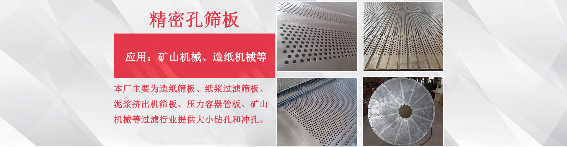濟南精達孔加工有限公司是一家加工生產型企業,擁有的數控篩板加工鉆床20余臺,鉆孔加工經驗10余年。公司擁有一支經驗豐富、化生產加工隊伍。公司主要提供造紙篩板、紙漿過濾機篩板、泥漿擠壓機篩板、壓力容器管板、礦山機械以及各種行業濾網鉆孔、沖孔加工,是各種大小孔、微孔的加工廠家...